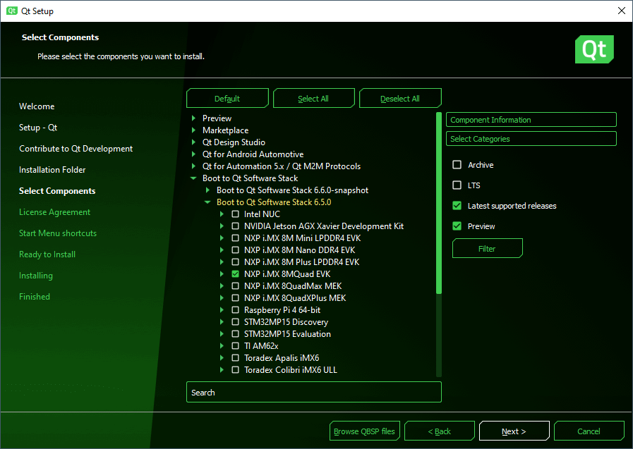 Installing Boot to Qt Software Stack Using the Qt Online Installer