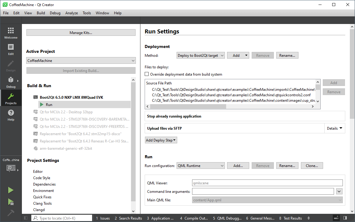 For more information on how to deploy Qt projects to the device, see Tutorial: Deploying Your First Project with Boot to Qt.