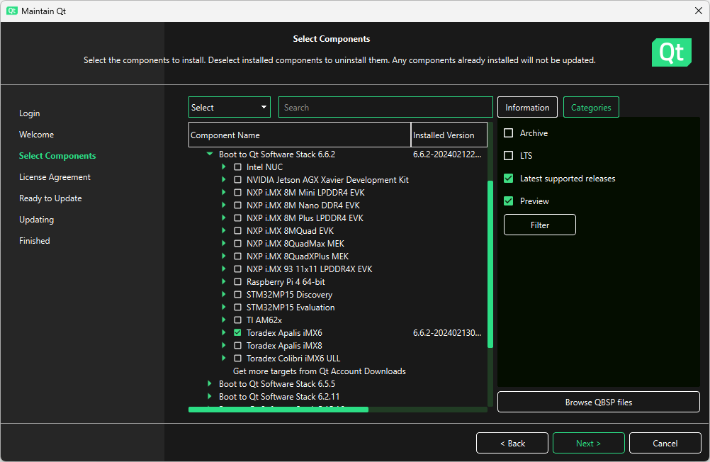 Installing Boot to Qt Software Stack Using Qt Maintenance Tool