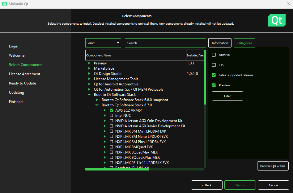 Installing Boot to Qt Software Stack Using Qt Maintenance Tool