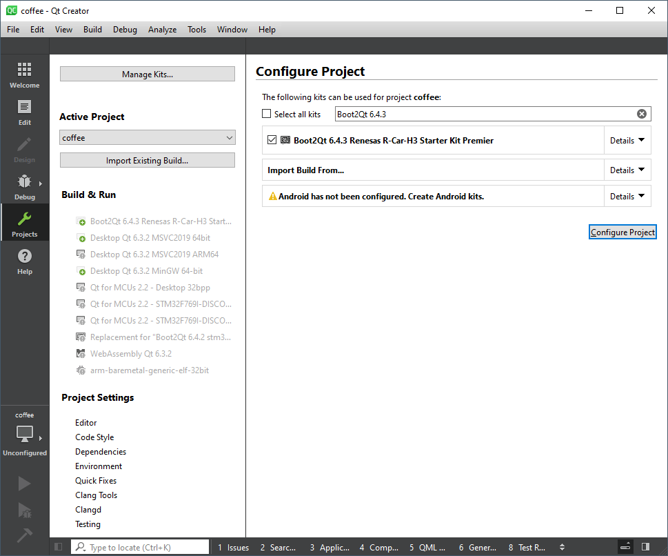 - Creating a project in Qt Creator and utilizing a Qt Board Support Package (QBSP) for the Renesas R-Car device.