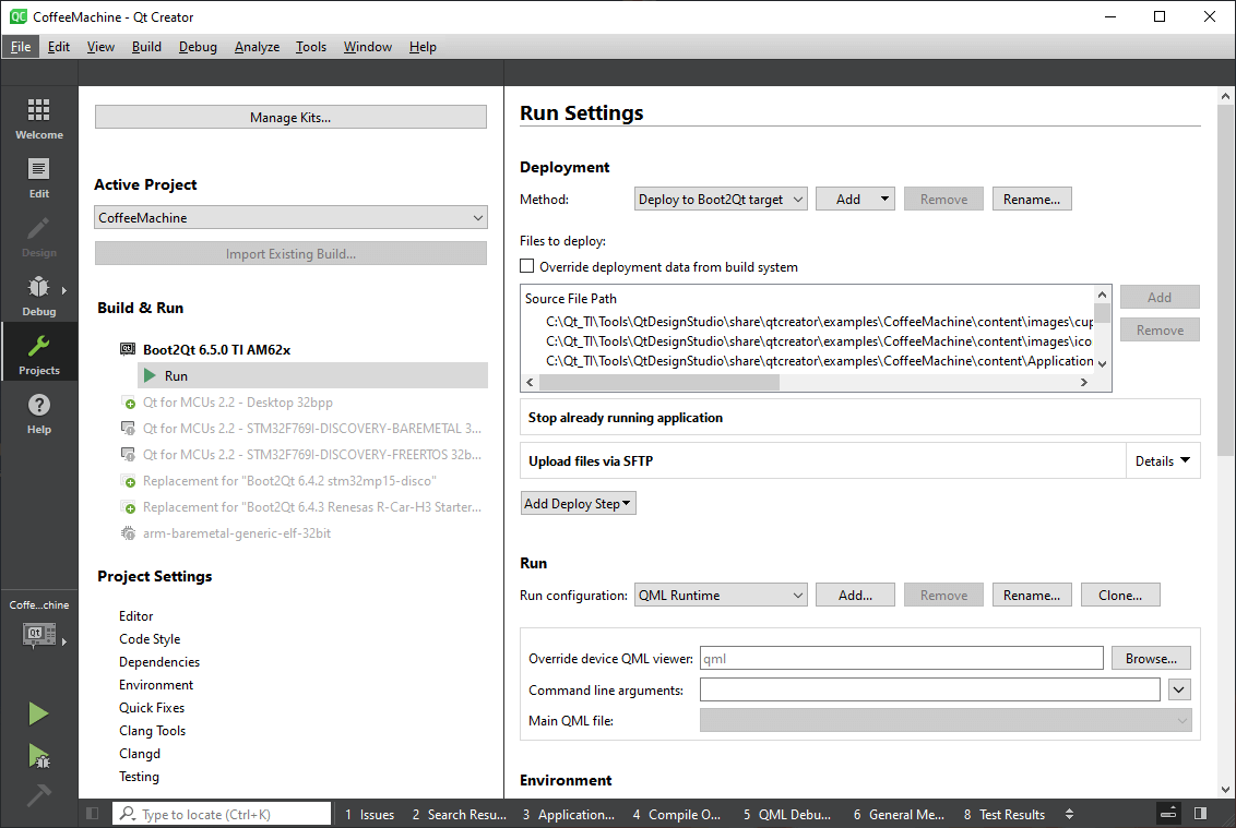 - Creating a project in Qt Creator and utilizing the ready-made Qt Board Support Package (QBSP) for TI SK devices.