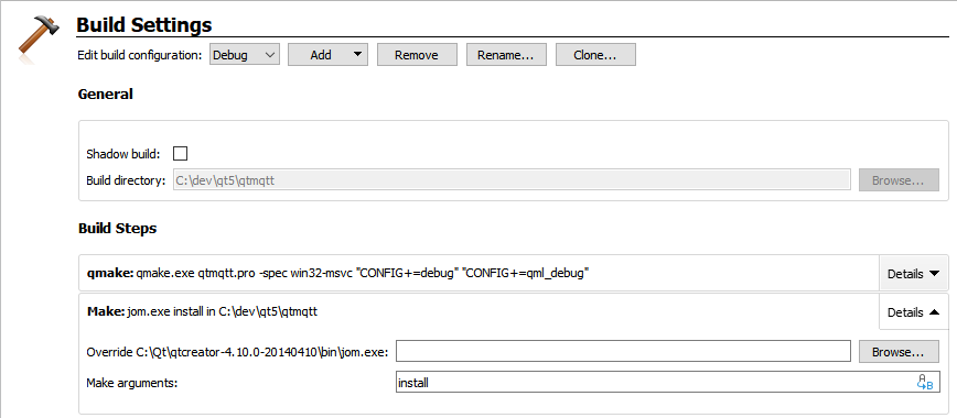 - Open the top-level project of the module (for example, qtmqtt.pro) with Qt Creator and select the build and run kit, as instructed in Qt Creator: Opening Projects.