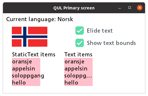 - Show text background - Adds a pink background to the text items, to visualize at what boundaries the text will be elided.