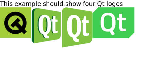 The example consists of a simple screen (fileloading.qml) that shows four different historical Qt logos. The leftmost image is a regular asset included in the application binary, while the other three are being read from the file system and stored in different formats.