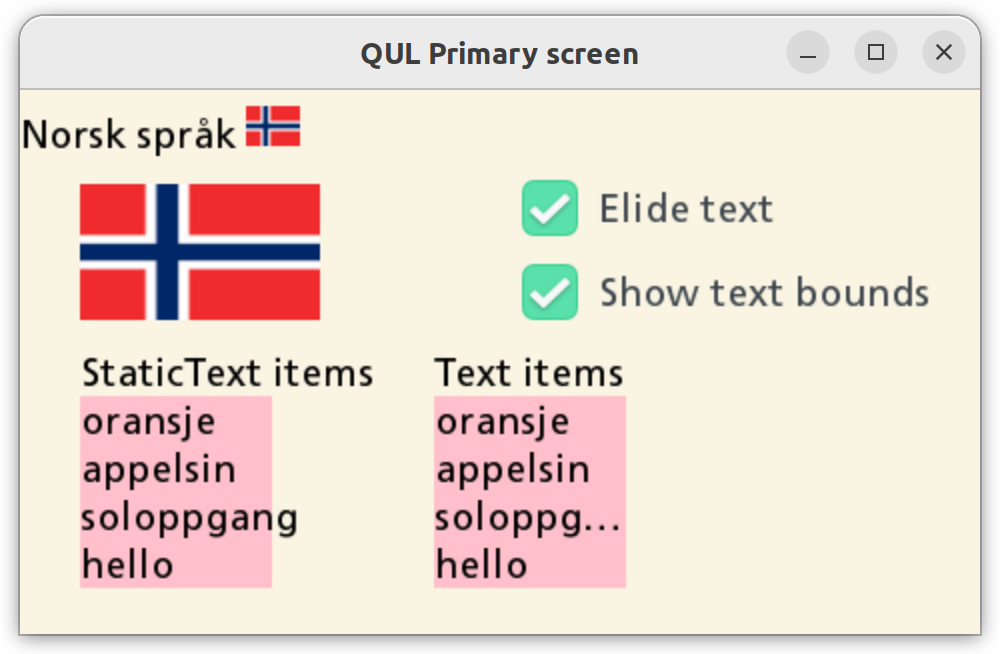 - Show text background - Adds a pink background to the text items, to visualize at what boundaries the text will be elided.