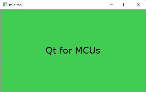 The minimal example consists of only three files, CMakeLists.txt, mcu_minimal.qmlproject and minimal.qml.