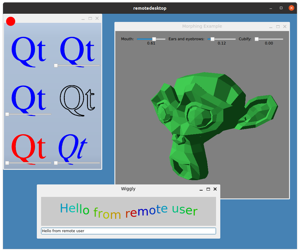 Remote Desktop demonstrates the use of the Qt VNC Server module and the Qt Wayland Compositor module to make a Wayland compositor with remote desktop capabilities.