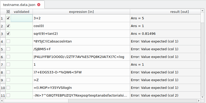 Each data row has an optional property: validated, which can be checked or un-checked from the testdataeditor. When a row is validated, that means: