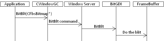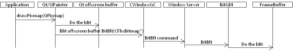 The following diagrams show a simplified sequence of drawing a pixmap in a non-ScreenPlay device.