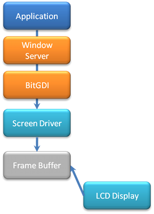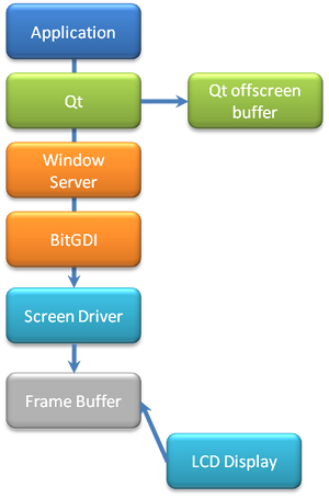 In order to be able to perform all functions provided by QPainter, the raster graphics system needs to have pixel level framebuffer access. To make this possible in non-ScreenPlay devices Qt has to create an additional offscreen buffer that is the target for all Qt rendering operations. Qt renders the widget tree to the offscreen buffer and the offscreen buffer is blitted to the framebuffer via Symbian Window Server.