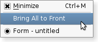 A QMenu can also provide a tear-off menu. A tear-off menu is a top-level window that contains a copy of the menu. This makes it possible for the user to "tear off" frequently used menus and position them in a convenient place on the screen. If you want this functionality for a particular menu, insert a tear-off handle with setTearOffEnabled(). When using tear-off menus, bear in mind that the concept isn't typically used on Microsoft Windows so some users may not be familiar with it. Consider using a QToolBar instead.