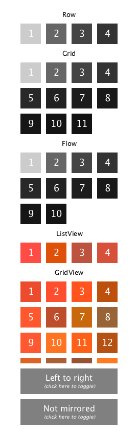 brief This example shows how to control the horizontal layout direction of Row, Grid and Flow positioners, and ListView and GridView model views.