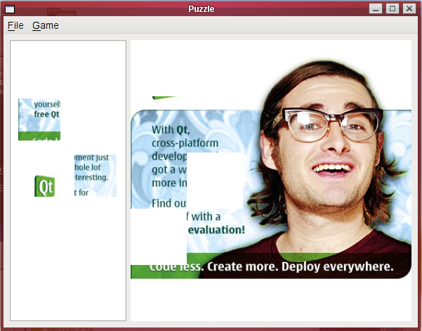 This example is an implementation of a simple jigsaw puzzle game using the built-in support for drag and drop provided by Qt's model/view framework. The Drag and Drop Puzzle example shows many of the same features, but takes an alternative approach that uses Qt's drag and drop API at the application level to handle drag and drop operations.