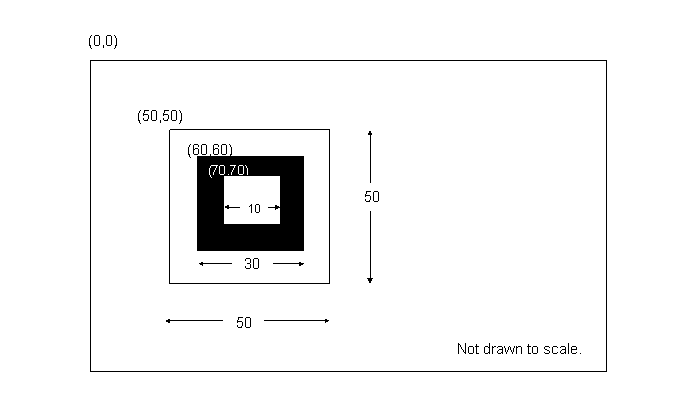 var context = canvas.getContext("2d"); canvas.strokeRect(50,50,50,50); canvas.fillRect(60,60,30,30); canvas.clearRect(70,70,10,10);