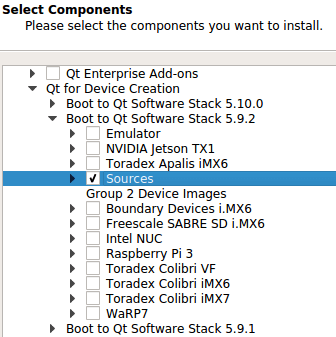 If your target device is not one of the reference devices, you can also build the Boot to Qt software stack image from sources. See Installing Boot to Qt Sources for more information how to install the Boot to Qt software stack sources.
