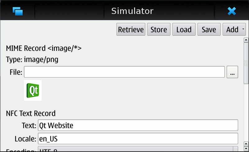 The NDEF Editor example reads and writes NFC Data Exchange Format (NDEF) messages to NFC Forum Tags. NDEF messages can be composed by adding records of supported types.