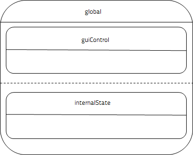 </datamodel>We define a root parallel state "global", with two child states, guiControl and internalState, which are also parallel. Because the top global state is parallel, all of its direct children are active when it is active. In this example, the role of global is to collect the child states and make them both active at a time.