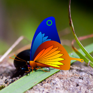 import QtQuick 2.12 import QtGraphicalEffects 1.12 Item { width: 300 height: 300 Image { id: bug source: "images/bug.jpg" sourceSize: Qt.size(parent.width, parent.height) smooth: true visible: false } Image { id: butterfly source: "images/butterfly.png" sourceSize: Qt.size(parent.width, parent.height) smooth: true visible: false } Blend { anchors.fill: bug source: bug foregroundSource: butterfly mode: "subtract" } }