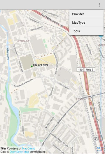 In today's world, location and maps information is more widely used, be it to look up nearby restaurants or plan commute to the office. With Qt, it is now possible to cater to these use cases by consuming map data provided by the third-party vendors. The Qt Location module provides the APIs and the necessary backend to fetch map data from some of the popular third-party mapping solutions. Here is a snapshot of the demo application running on Android, presenting OpenStreetMap data from www.mapquest.com. |