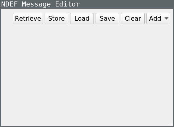The NDEF Editor example reads and writes NFC Data Exchange Format (NDEF) messages to NFC Forum Tags. NDEF messages can be composed by adding records of supported types. Additionally, NDEF messages can be loaded/saved from/into a file located in the file system of the machine where the application is running.