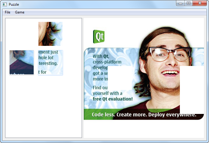 This example is an implementation of a simple jigsaw puzzle game using Qt's drag and drop API. The Item View Puzzle example shows many of the same features, but takes an alternative approach that uses Qt's model/view framework to manage drag and drop operations.