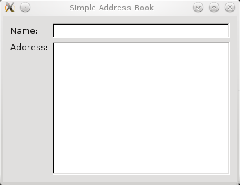 AddressBook::AddressBook(QWidget *parent) : QWidget(parent) { QLabel *nameLabel = new QLabel(tr("Name:")); nameLine = new QLineEdit; QLabel *addressLabel = new QLabel(tr("Address:")); addressText = new QTextEdit;