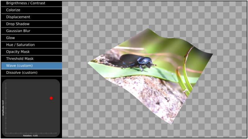 The Graphical Effects demo demonstrates the usage of the Qt Quick 2.0 ShaderEffect type and the Qt Graphical Effects module. Qt Quick 2.0 provides the ability to use inline OpenGL Shading Language (GLSL) in your Qt Quick applications to create stunning visual effects. However, as UIs typically reuse many of the same effects, the Qt Graphical Effects module provides a set of predefined, commonly used effects. This includes blur, drop-shadows, glow, blending, opacity masks, and more.