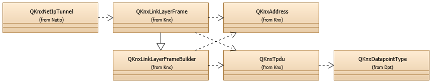 The following diagram shows the main Qt KNX module classes that enable tunneling: