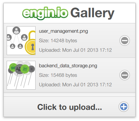 Go to the Enginio Dashboard and create a new backend with the Image Gallery template.