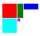 import QtQuick 2.0 Grid { columns: 3 spacing: 2 Rectangle { color: "red"; width: 50; height: 50 } Rectangle { color: "green"; width: 20; height: 50 } Rectangle { color: "blue"; width: 50; height: 20 } Rectangle { color: "cyan"; width: 50; height: 50 } Rectangle { color: "magenta"; width: 10; height: 10 } }