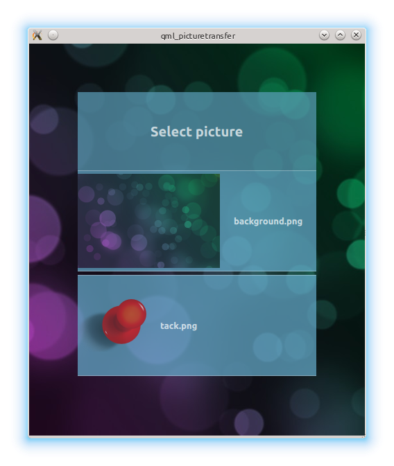 The next page presents a list of image files on the device. The files must be located under QStandardPaths::PicturesLocation}: