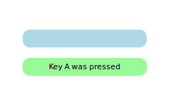 Rectangle { id: widget color: "lightsteelblue"; width: 175; height: 25; radius: 10; antialiasing: true Text { id: label; anchors.centerIn: parent} focus: true Keys.onPressed: { if (event.key == Qt.Key_A) label.text = 'Key A was pressed' else if (event.key == Qt.Key_B) label.text = 'Key B was pressed' else if (event.key == Qt.Key_C) label.text = 'Key C was pressed' } }