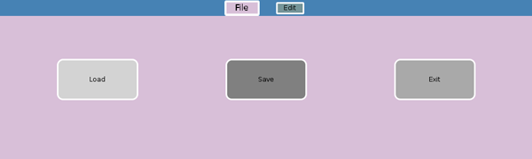 Our FileMenu needs to display the FileDialog object, containing a list of the text files in a directory thus allowing the user to select the file by clicking on the list. We also need to assign the save, load, and new buttons to their respective actions. The FileMenu contains an editable text input to allow the user to type a file name using the keyboard.