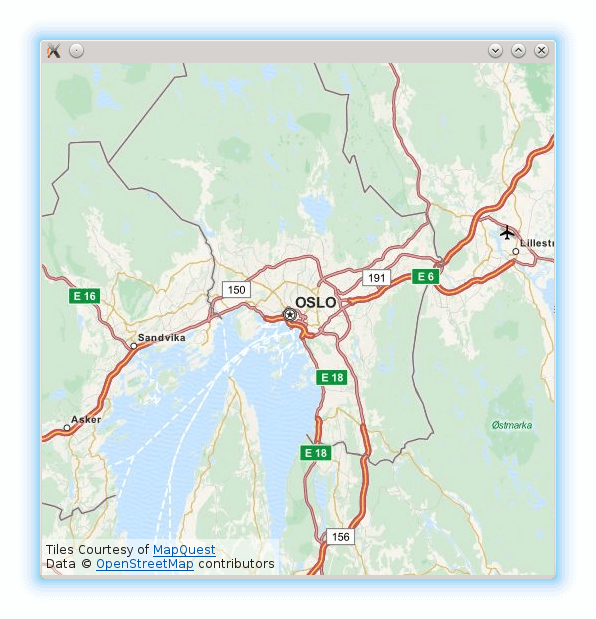 import QtQuick 2.0 import QtQuick.Window 2.0 import QtLocation 5.6 import QtPositioning 5.6 Window { width: 512 height: 512 visible: true Plugin { id: osmPlugin name: "osm" // specify plugin parameters if necessary // PluginParameter { // name: // value: // } } Map { anchors.fill: parent plugin: osmPlugin center: QtPositioning.coordinate(59.91, 10.75) // Oslo zoomLevel: 10 } }