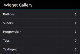 ListModel { id: pageModel ListElement { title: "Buttons" page: "content/ButtonPage.qml" } ListElement { title: "Sliders" page: "content/SliderPage.qml" } ListElement { title: "ProgressBar" page: "content/ProgressBarPage.qml" } ListElement { title: "Tabs" page: "content/TabBarPage.qml" } ListElement { title: "TextInput" page: "content/TextInputPage.qml" } ListElement { title: "List" page: "content/ListPage.qml" } }