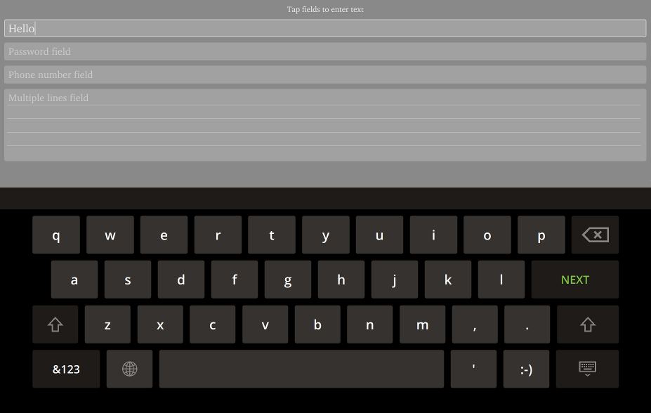The example shows how to build a virtual keyboard UI with support for multiple keyboard layouts using QML, and a QPlatformInputContext bridge for communicating between the keyboard and focused text editor in C++.