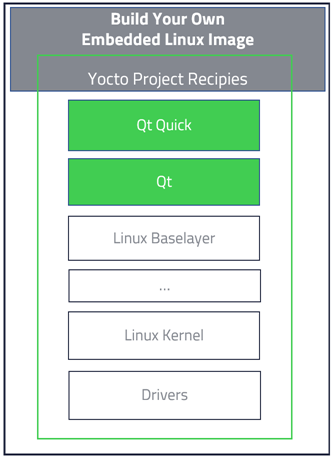Boot to Qt for embedded Linux is built using the tools and resources from the Yocto Project, and is based on Yocto's reference distribution (Poky). You can use the same tools to build custom Boot to Qt images, and have control over which packages are included in the build and how the software stack is configured.