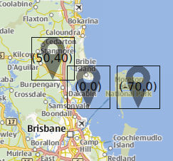 In addition to being anchored to the map, the MapQuickItem can optionally follow the scale of the map, and change size when the Map is zoomed in or zoomed out. This behaviour is controlled by the zoomLevel property. The default behaviour if zoomLevel is not set is for the item to be drawn "on the screen" rather than "on the map", so that its size remains the same regardless of the zoom level of the Map.