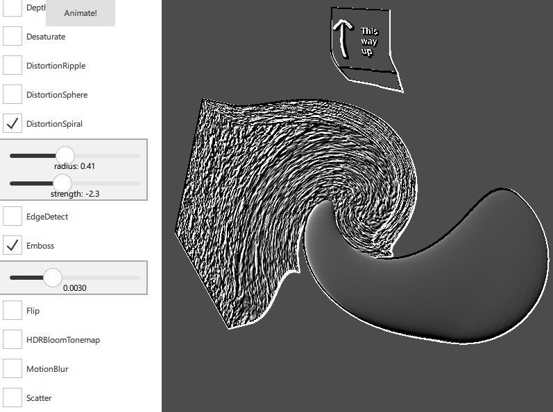 This example demonstrates all the pre-made post-processing effects that are available in the QtQuick3D.Effects module. It provides a user interface for changing the properties of each effect, and allows effects to be chained together.