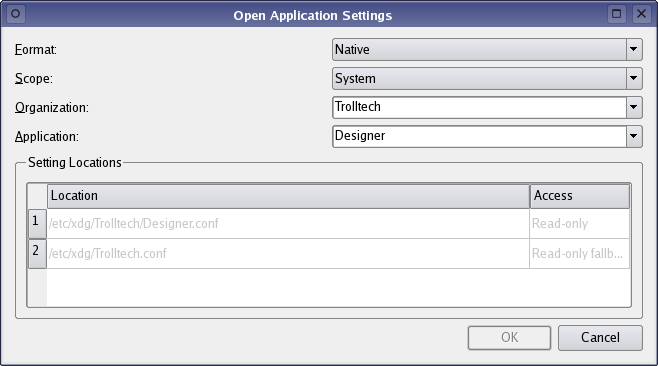 The Settings Editor example shows how Qt's standard settings support is used in an application by providing an editor that enables the user to view the settings for installed applications, and modify those that can be edited.