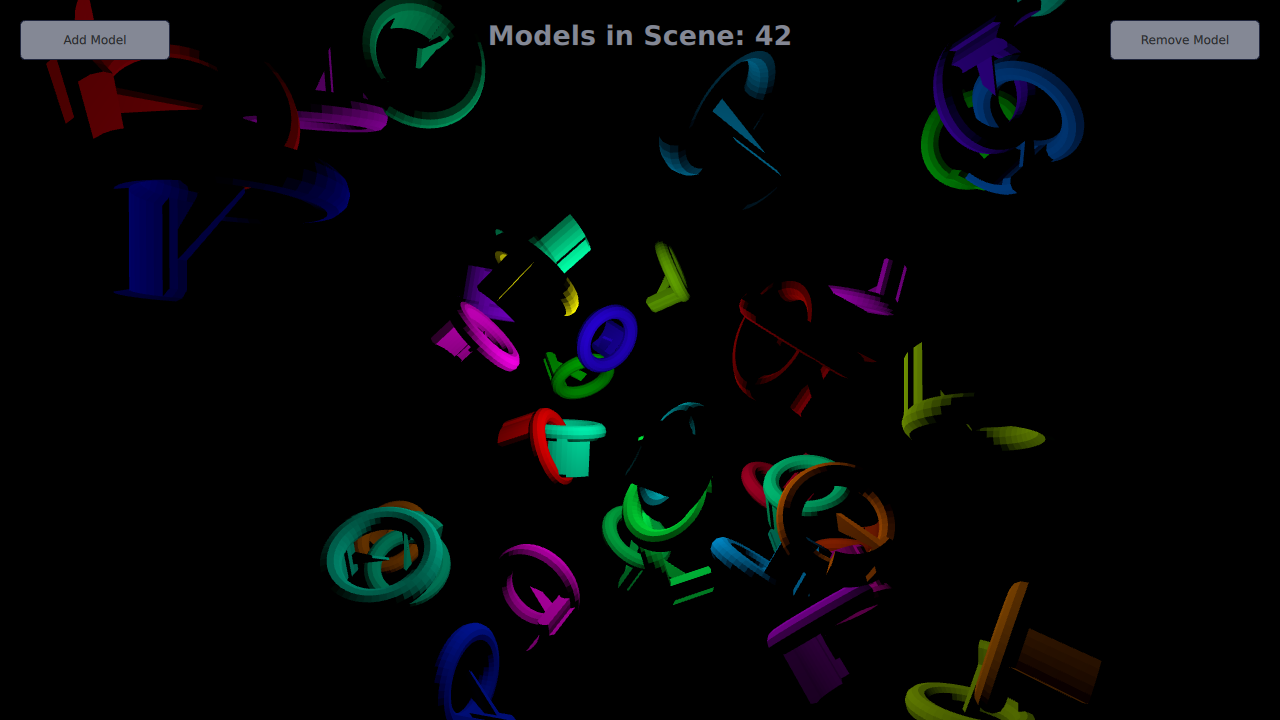 This example demonstrates creating models dynamically in an application. 10 models are created dynamically at the start of the application, and more can be added or removed using the Add Model and Remove Model buttons.