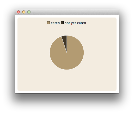 import QtQuick 2.0 import QtCharts 2.0 ChartView { width: 400 height: 300 theme: ChartView.ChartThemeBrownSand antialiasing: true PieSeries { id: pieSeries PieSlice { label: "eaten"; value: 94.9 } PieSlice { label: "not yet eaten"; value: 5.1 } } }