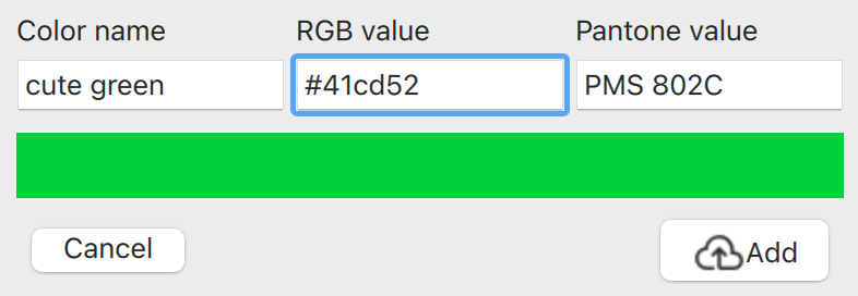 Editing and adding new colors is done in a popup: