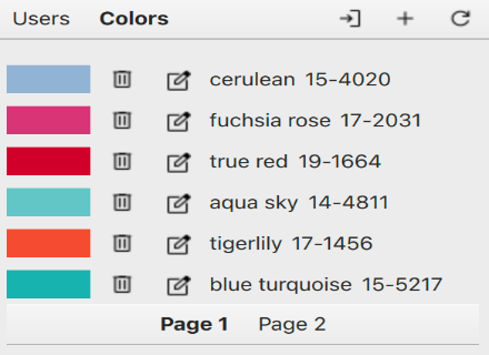 The users and colors are paginated resources on the server-side. This means that the server provides the data in chunks called pages. The UI listing reflects this pagination and views the data on pages.