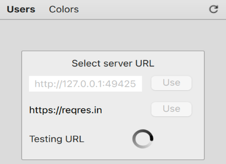 One major difference between the two predefined API options is that the Qt-based REST API server example is a stateful application which allows modifying colors, whereas the reqres.in is a stateless API testing service. In other words, when using the reqres.in backend, modifying the colors has no impact on the UI.