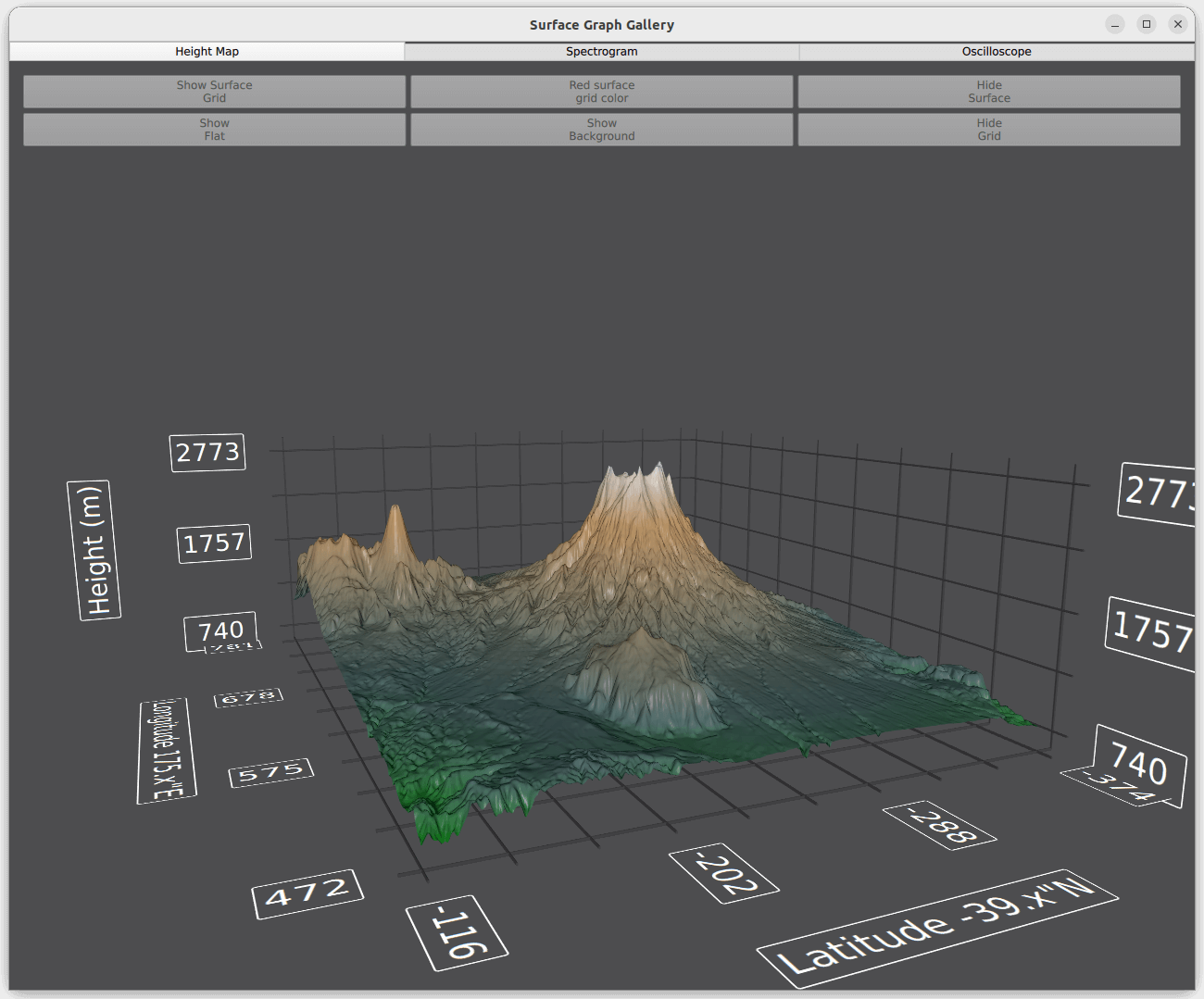 Surface3DSeries { id: heightSeries flatShadingEnabled: false drawMode: Surface3DSeries.DrawSurface HeightMapSurfaceDataProxy { heightMapFile: "://qml/surfacegallery/heightmap.png" // We don't want the default data values set by heightmap proxy, but use // actual coordinate and height values instead autoScaleY: true minYValue: 740 maxYValue: 2787 minZValue: -374 // ~ -39.374411"N maxZValue: -116 // ~ -39.115971"N minXValue: 472 // ~ 175.471767"E maxXValue: 781 // ~ 175.780758"E } onDrawModeChanged: heightMapView.checkState() }