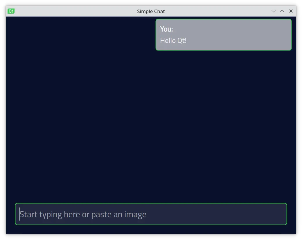 When the server sends new messages to the stream, QGrpcStream emits the QGrpcStream::messageReceived signal. The slot connected to this signal processes the chat message. Messages that are received from the SimpleChat/messageList server stream are collected in the custom QAbstractListModel model and displayed to the user.