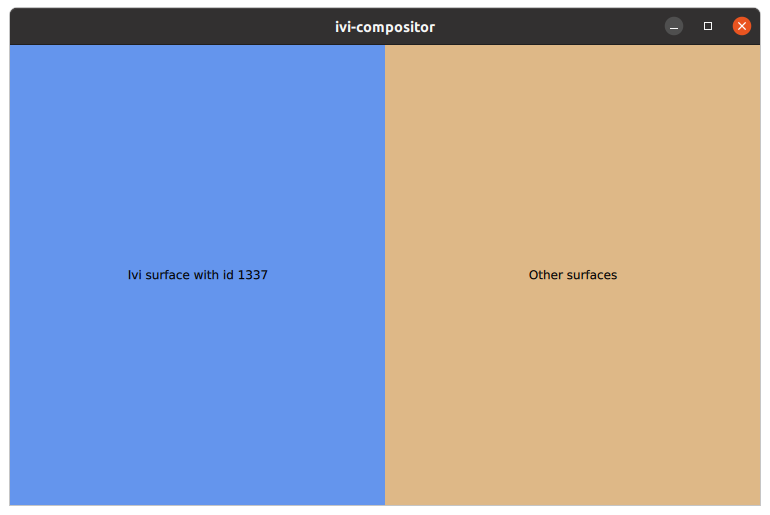 However, if we set the QT_IVI_SURFACE_ID environment variable to "1337" before starting the example, it will be delegated to the left-hand side of the layout.