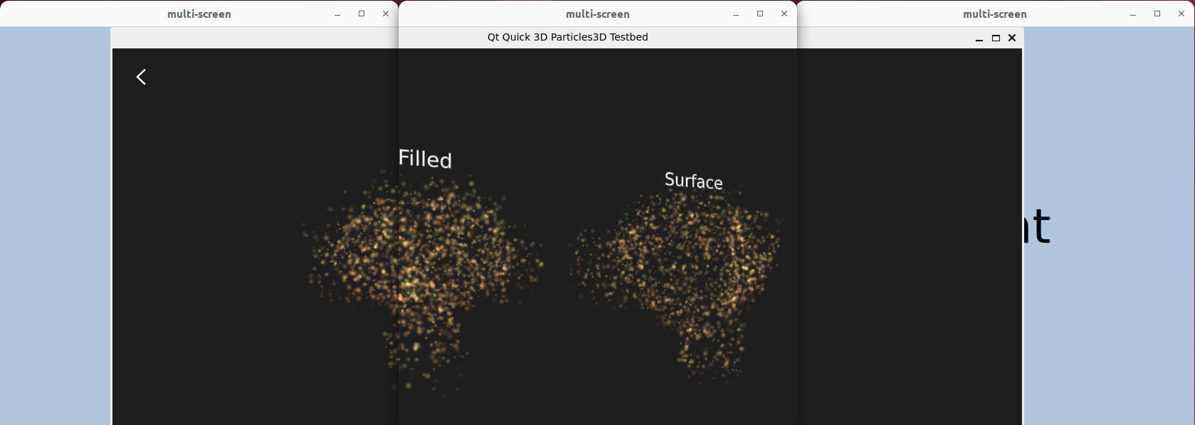 Each WaylandOutput contains a Window, which is used for containing client content, as is the standard setup with Qt Wayland Compositor. Since each Window is isolated from the others, we cannot share any Qt Quick items between them. Therefore, when a client connects and a ShellSurface is created, one ShellSurfaceItem is created on each of the screens.